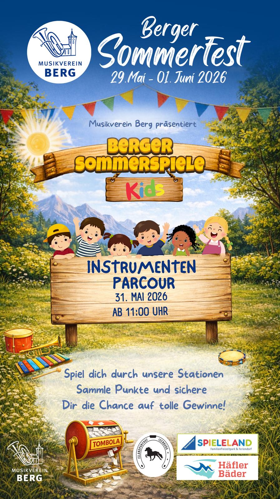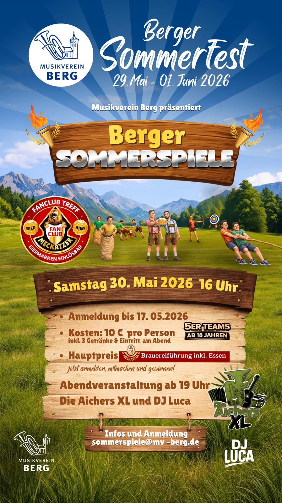 Er ist die musikalische Heimat der Musikkapelle und Teil der JuKa Dreierlei, die wir gemeinsam mit den befreundeten Musikvereinen Ailingen und Jettenhausen gegründet haben. Am Wochenende nach Pfingsten veranstaltet der Förderverein des Musikvereins Berg mit Unterstützung von vielen freiwilligen Helfern aus und um Berg das bekannte Berger Sommerfest.